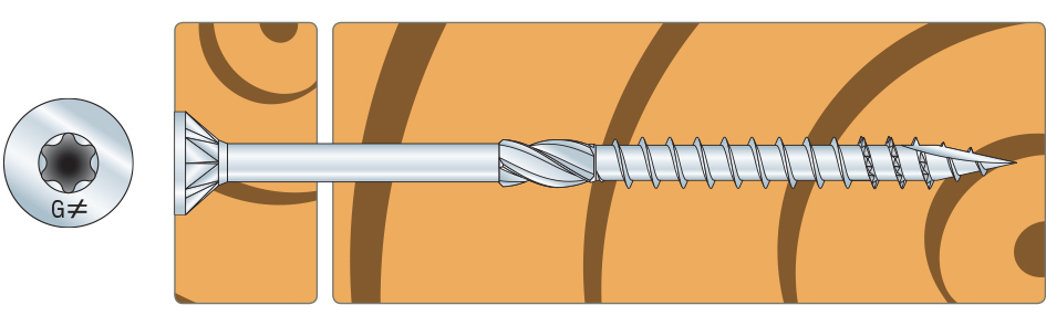 Suitable for outdoor use, the TTZNFS screw has a serrated thread to reduce the resistance when driving. It has a type 17 point which prevents wood splitting. 80 mm or longer variants have an additional milling thread to further reduce the resistance.