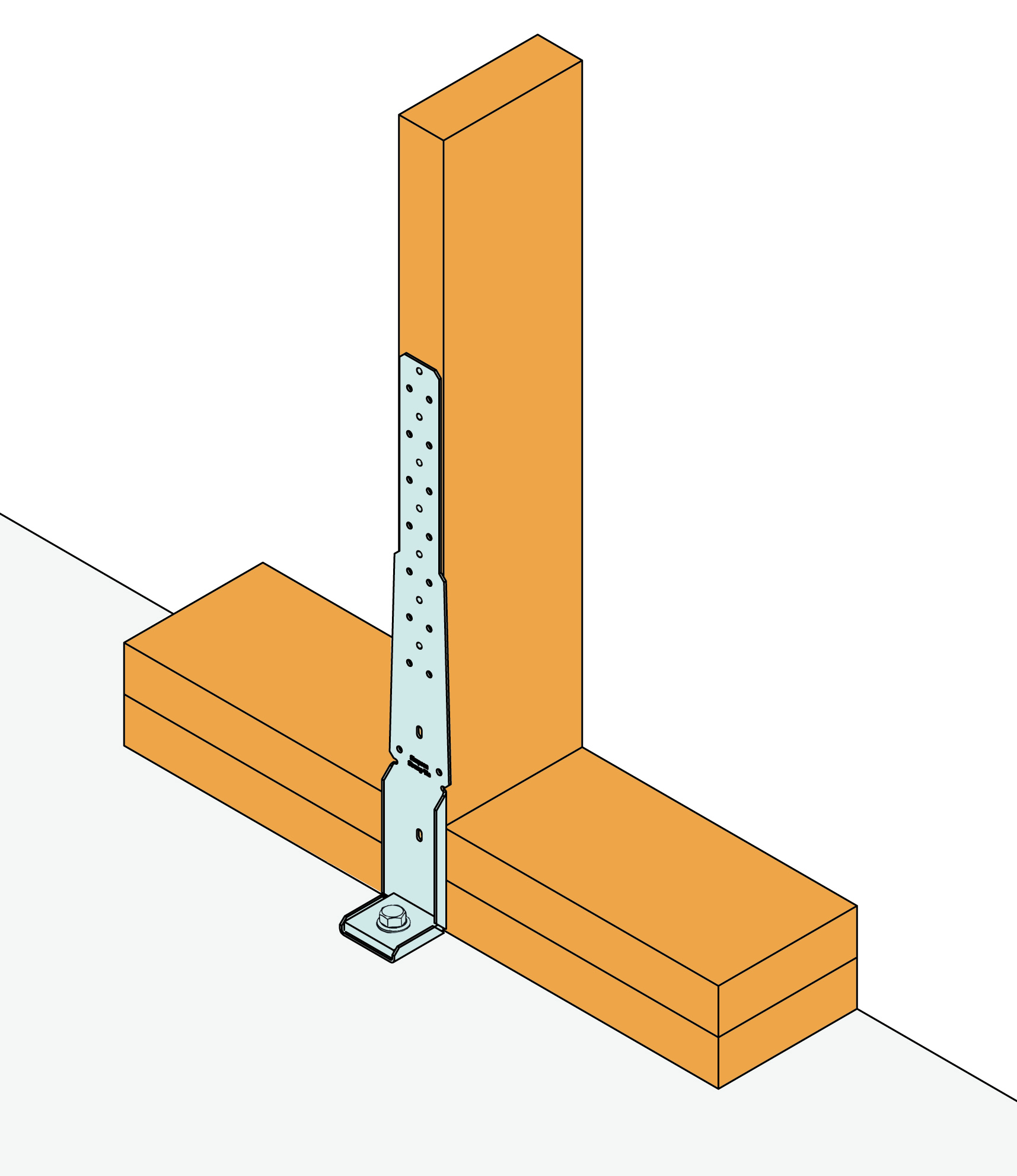 - Förankrar trästommen stumt mot grunden. (rekommenderas i seismiska zoner).