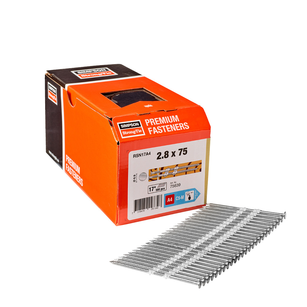 Framing Nail 17° Plastic strip - Round head, Ring shank - Stainless A4