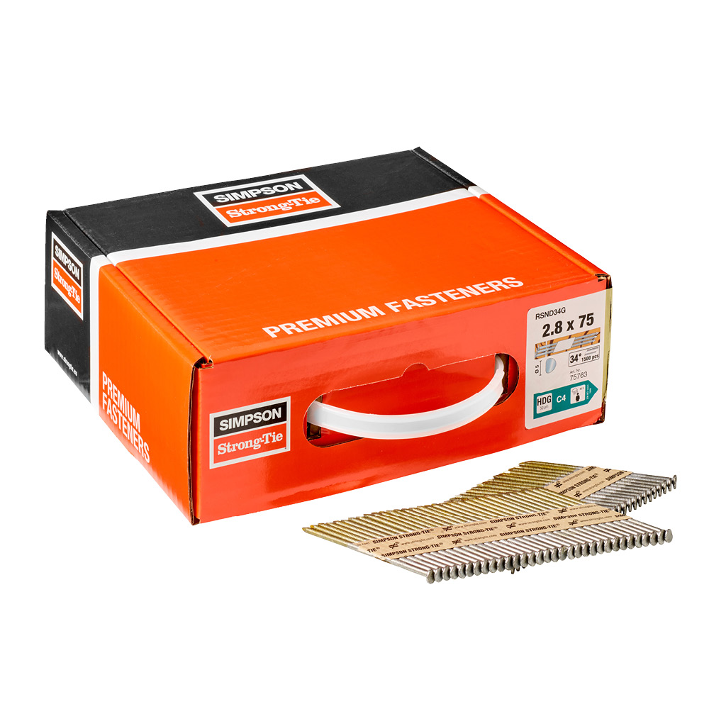 Framing Nail 34° Paper tape - Clipped Head, Ring shank - HDG