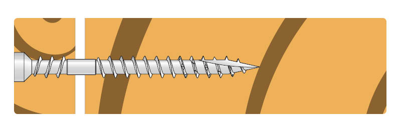 Used outdoor when laying solid wood flooring. The small screw head means that countersinking in the base material is improved, and the screw's design helps preventing wooden floors creaking. Corrosion resistance of the steel is compairable with traditional.