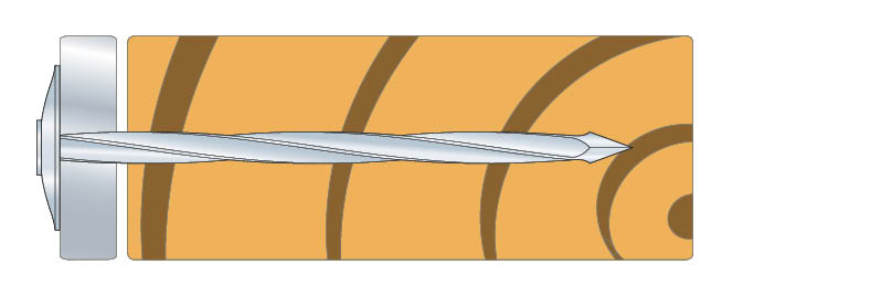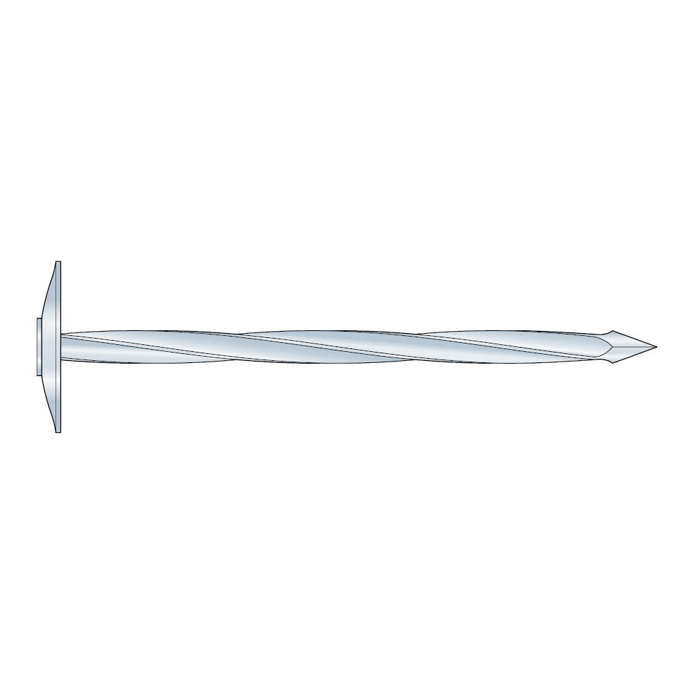 Roofing nail, twisted shank and bell head, which can withstand rain. Has a number of uses, including the installation of constructional and roofing sheeting to a wood base.