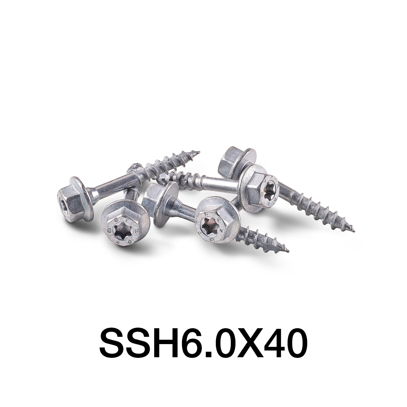 SSH-ruuvia käytetään yhdessä liittimien kanssa, kun vaaditaan suurta kantokykyä. Kannan alla oleva kartiomainen muoto sopii täydellisesti liitosreikään ja muodostaa tukevan asennuksen. Soveltuu ulkokäyttöön. Leikkuukärjen tyyppi 17 estää halkeilun ja valssattu kierre ja sahalaitakierre vähentävät kiristyksen vaatimaa vääntömomenttia. SSH-ruuvissa on sekä kuusisakarainen tähtikolokanta että kuusiokanta, mikä mahdollistaa asennuksen sekä kärkipalalla että holkeilla.