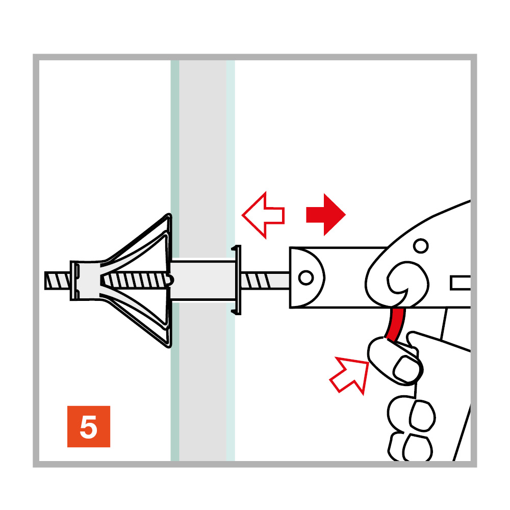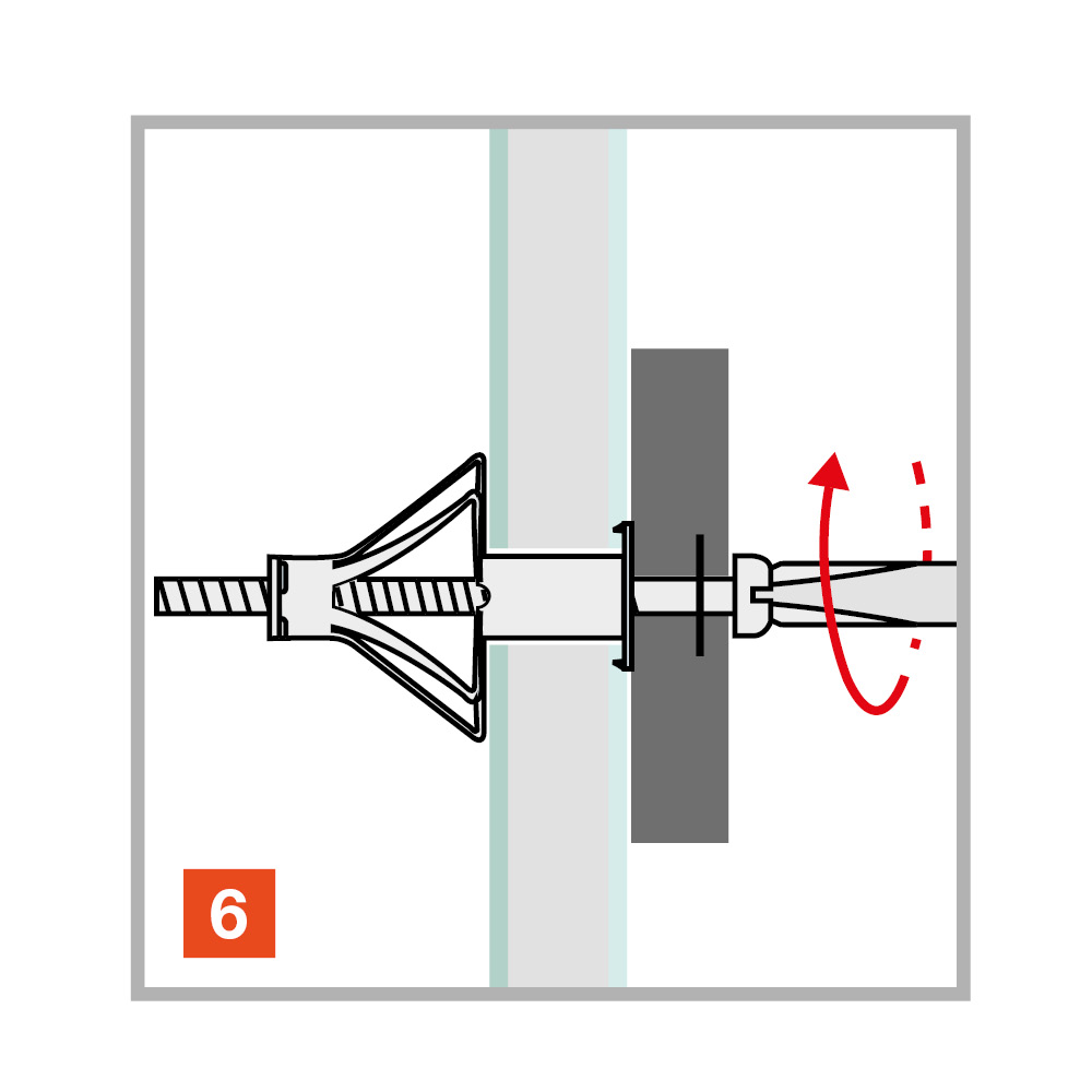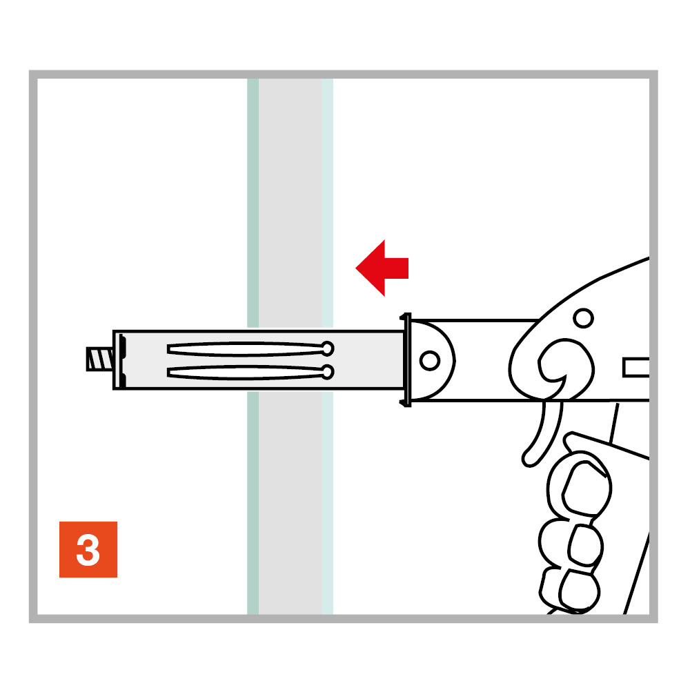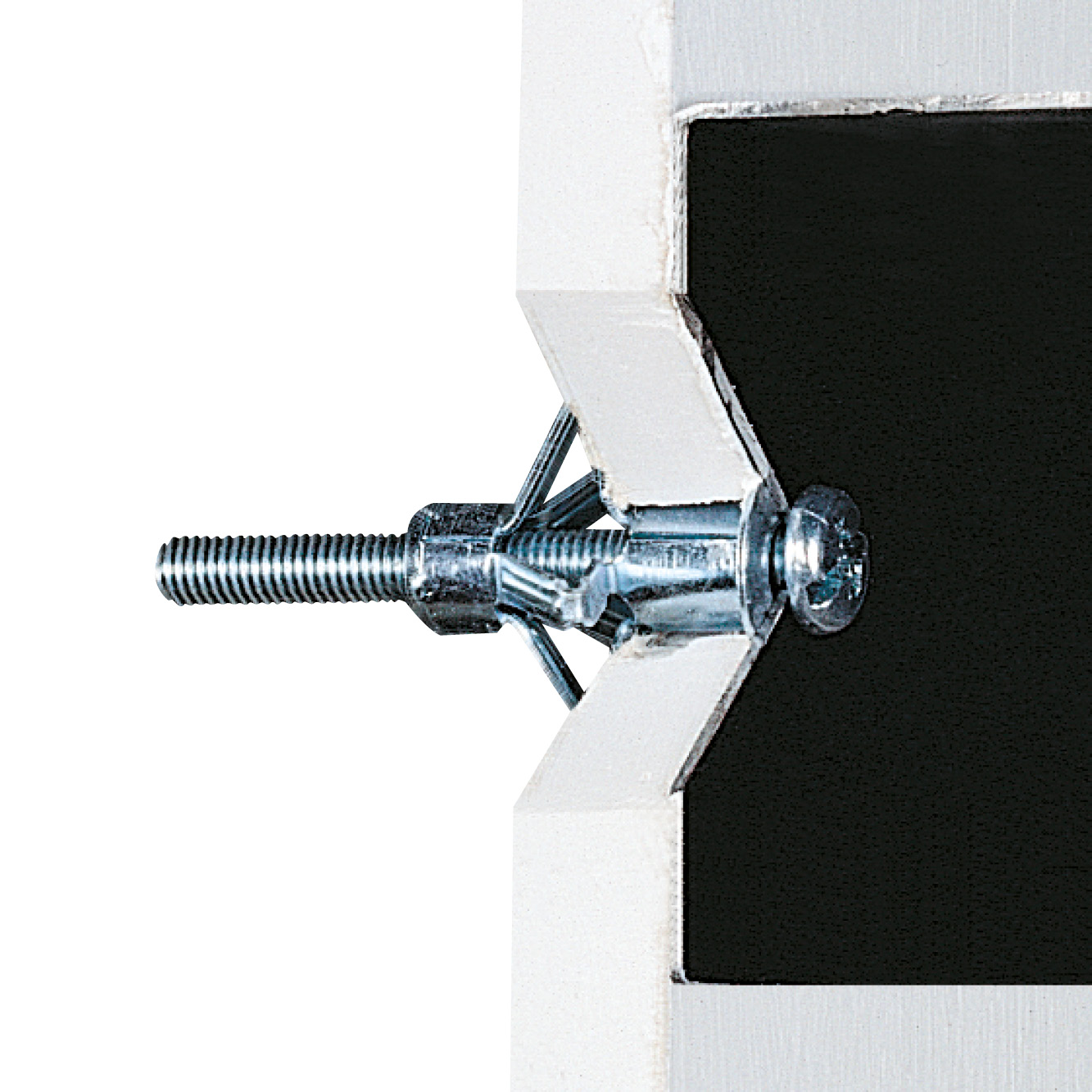 The TMC metallic anchor in the versions Ø8, Ø10 and Ø12 mm is designed for fixings on anchoring bases with cavities. The anchor is placed in push-through assembly with the TMC setting tool, tightened and braced against the building material. By means of the pre-mounted metric screws, attachments can then be connected and also removed again in a force-locking manner.