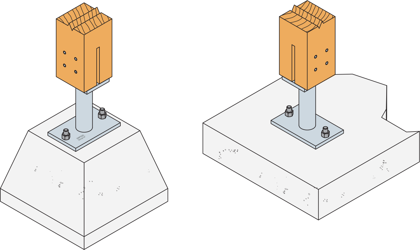 * Katso Simpson Strong-Tie ankkuri -tuotevalikoima sopiville ankkureille. Tyypillisiä ankkuriliuoksia ovat WA, BOAXII, AT-HP, SET-XP, riippuen betonista, välimatkoista ja reunaetäisyydestä.