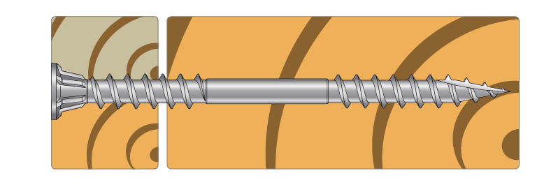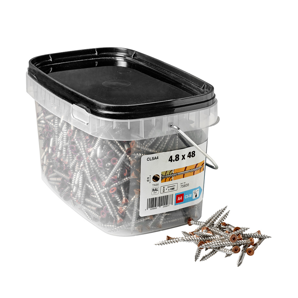 Made for outdoor wood cladding. The flat head with fiber lock technology protects the wood from moisture, and the double thread ensures sufficient insertion, even in high density wood without the risk of spin-off. Stainless A4 version made for non-painted facades or in marine environments.