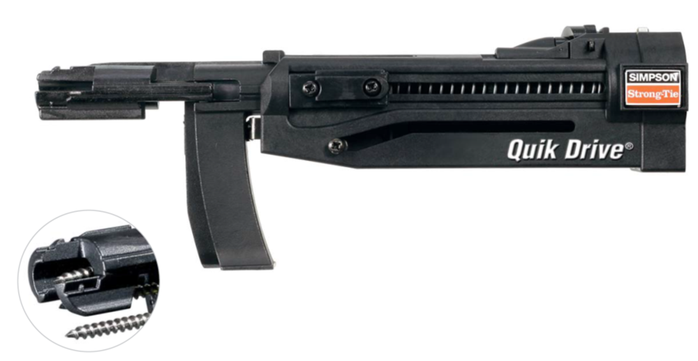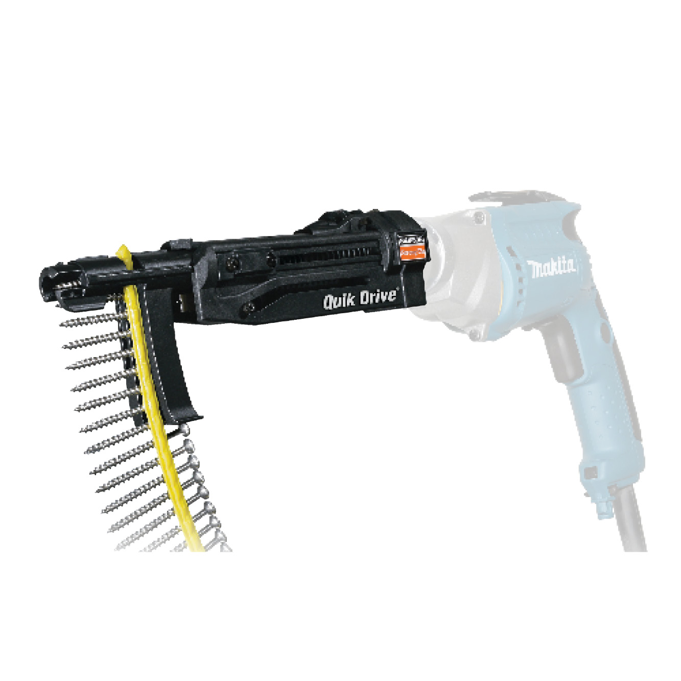 The QDPRORFE is a Quik Drive attachment suitable for screws ranging from 38 mm to 64 mm in length. It can be used for a variety of applications including fixing cladding boards, roof tiles, decking and flooring. The visibility window in the nose peice allows for visual inspection and precise placement of screws and improved accuaracy. Quik Drive attachments are manufactured containing PTFE to reduce friction and impart non-stick properties meaning that no lubrication is required. The QDPRORFE is available as attachment only and extension poles can be purchased seperately.
