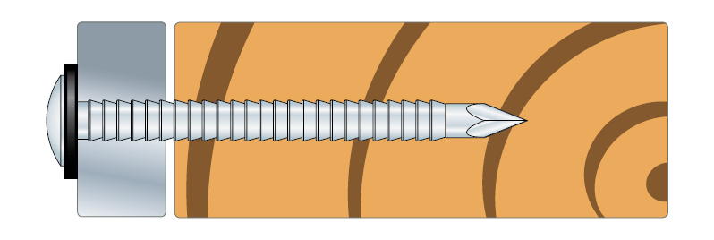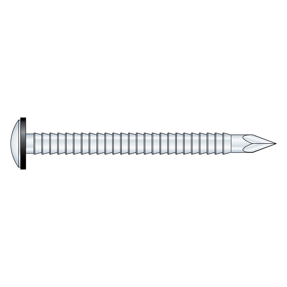 Metalwork nail with low oval head and ring shank that can withstand rain. For use in sheet metal work involving aluminium.