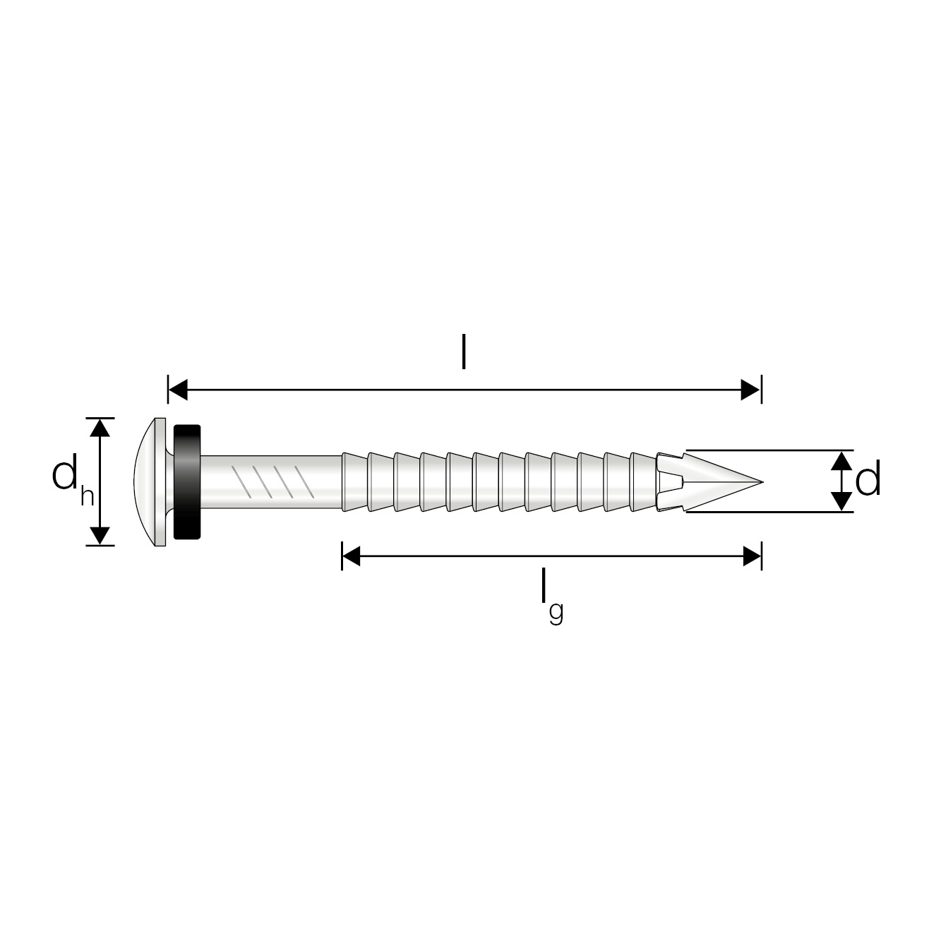 Metalwork nail with slightly oval head and ring shank that can withstand rain. For use in sheet metal work e.g. electro galvanised and laquered.