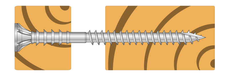 This special frame screw is used for indoor installation of interior door frames with pre-drilled holes - Ø14 mm from one side and Ø6 mm from the other. The anchor thread under the head grips the woodwork, allowing the frame to be adjusted both inwards and outwards.