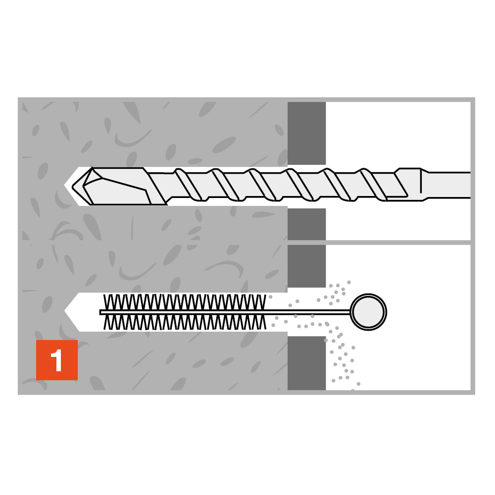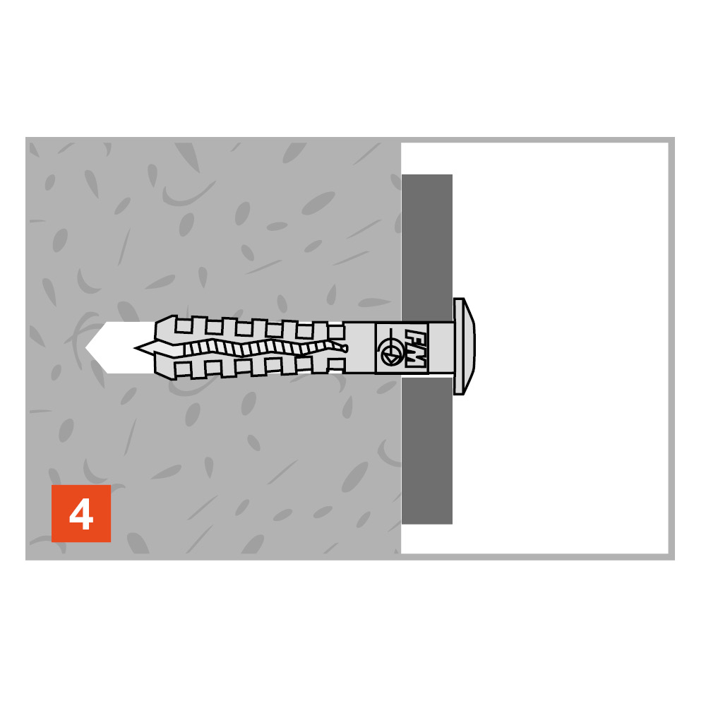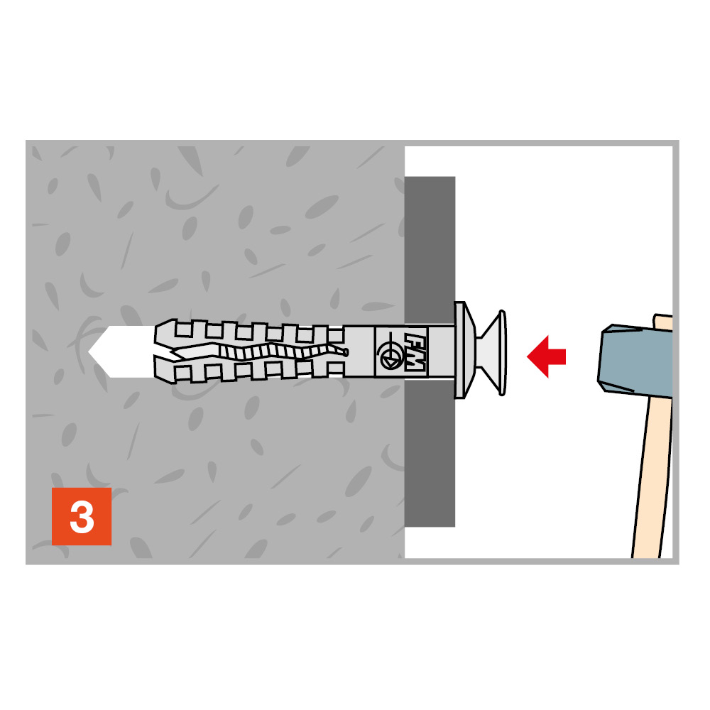 The TBB nail anchors with a large rim in the Ø6 and Ø8 mm versions are approved for fastening in concrete. When the nail screw is driven into the plug, it is expanded and securely anchored in the building material.