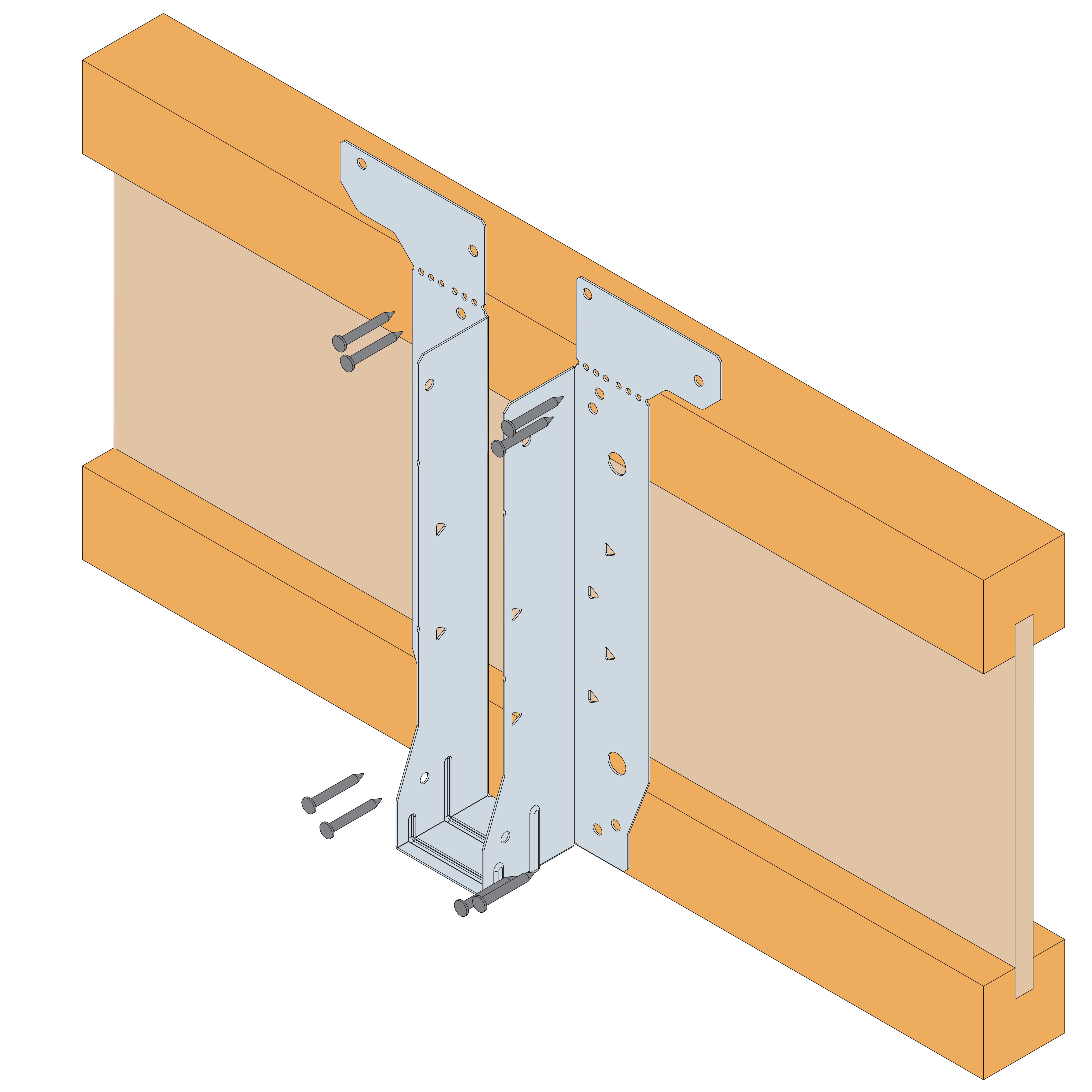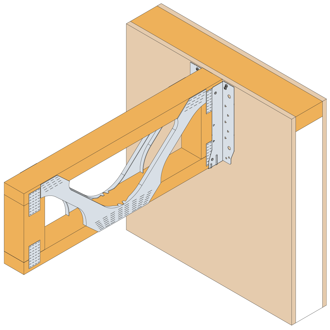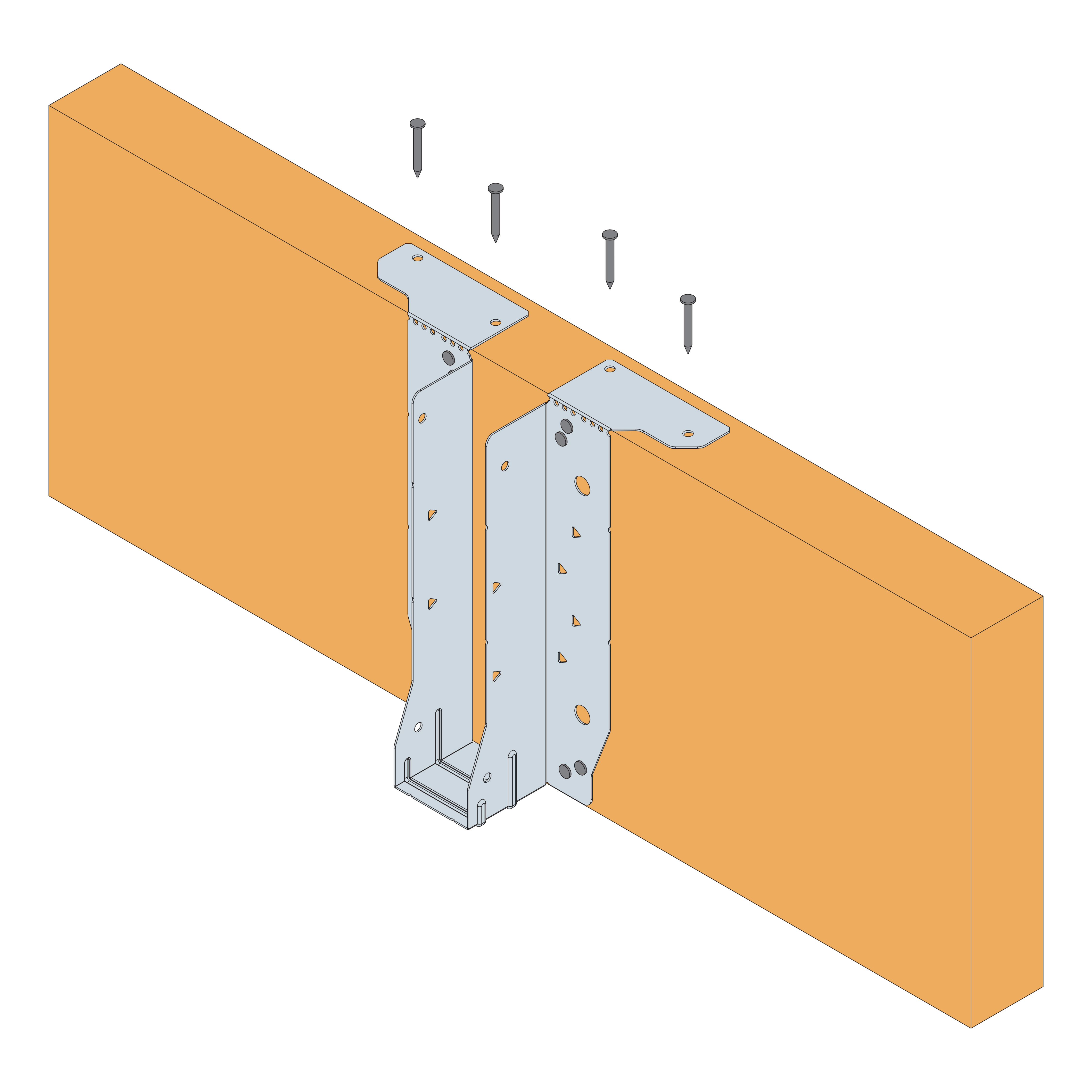 - Vain I-palkkien otsikot: Asenna tukipalikka I-palkin etupintaan. Tukipalikan koko ja asennusvaatimukset tulee tehdä asiaankuuluvan I-palkkivalmistajan’s määräysten mukaisesti.