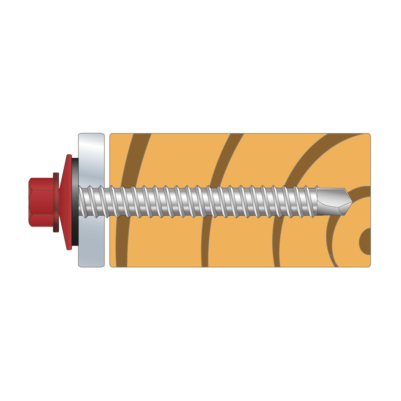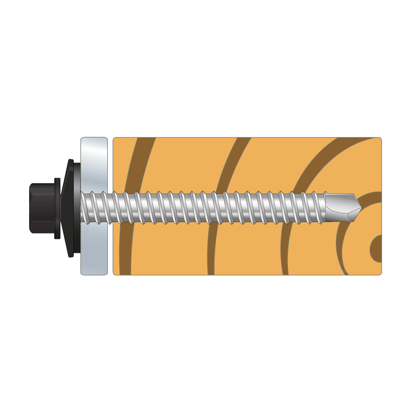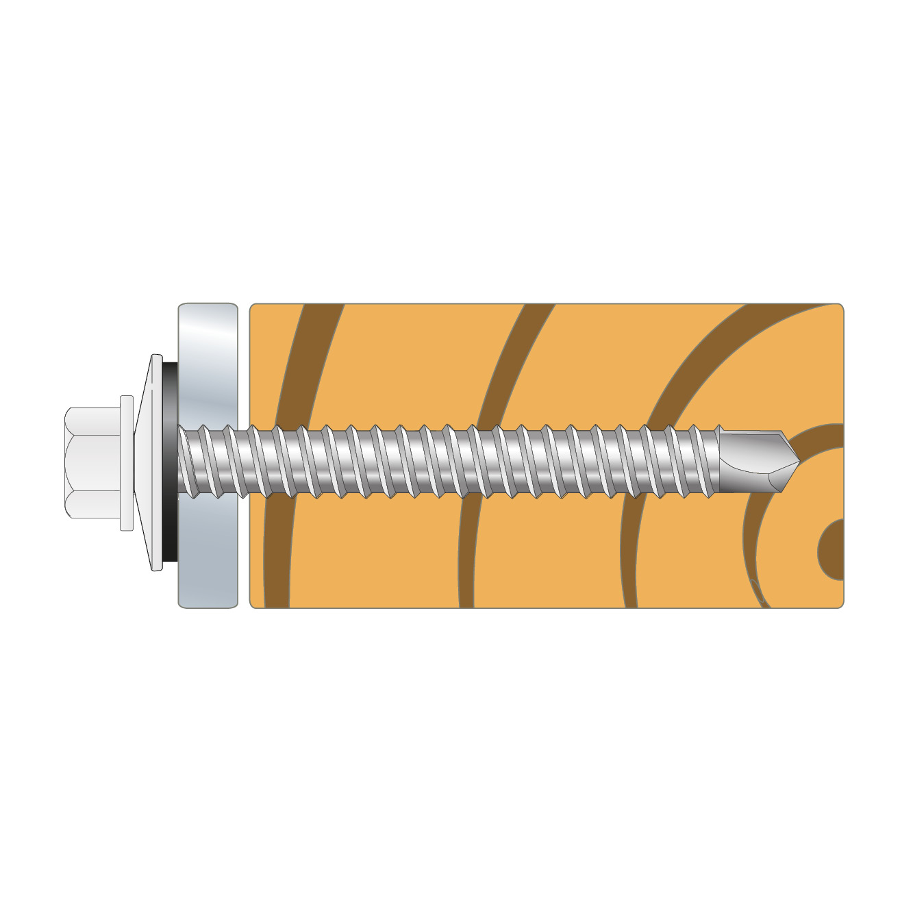Farmer screw with drill point is used to fix profiled metal sheet to wood for roof and wall installation. Fit the screw in the concave part of the profiled sheet. Drilling capacity is 2.0 x 1.0 mm.
