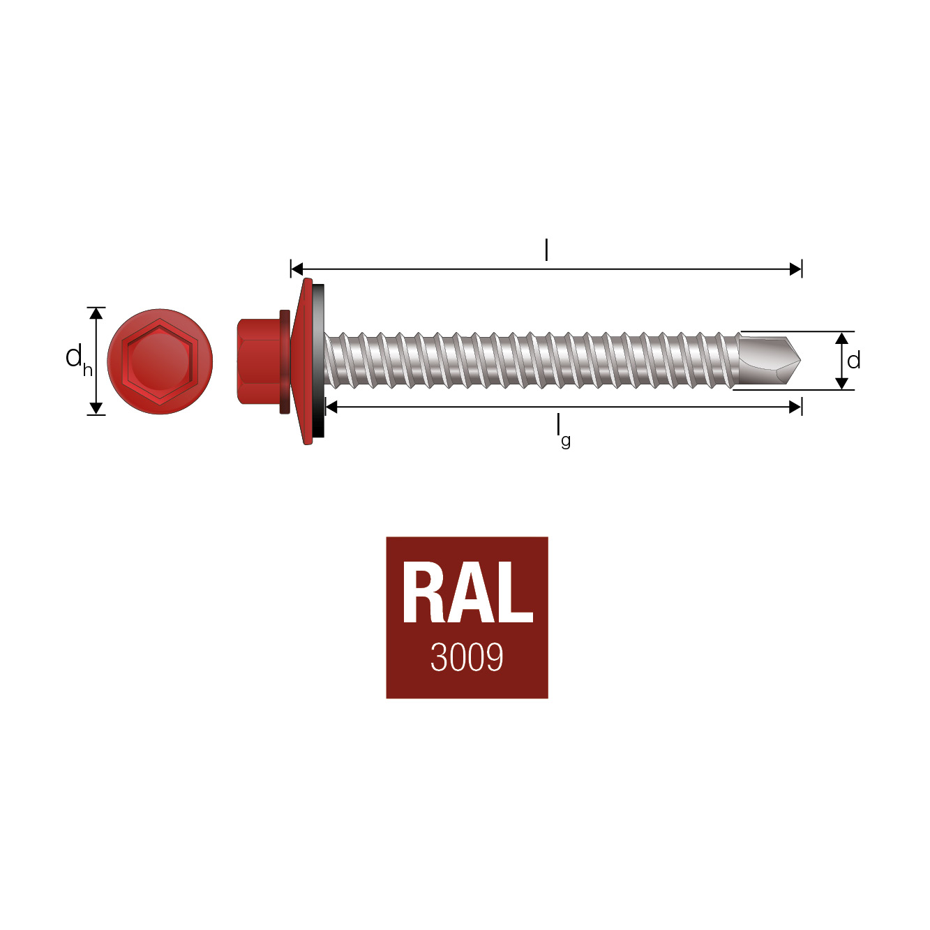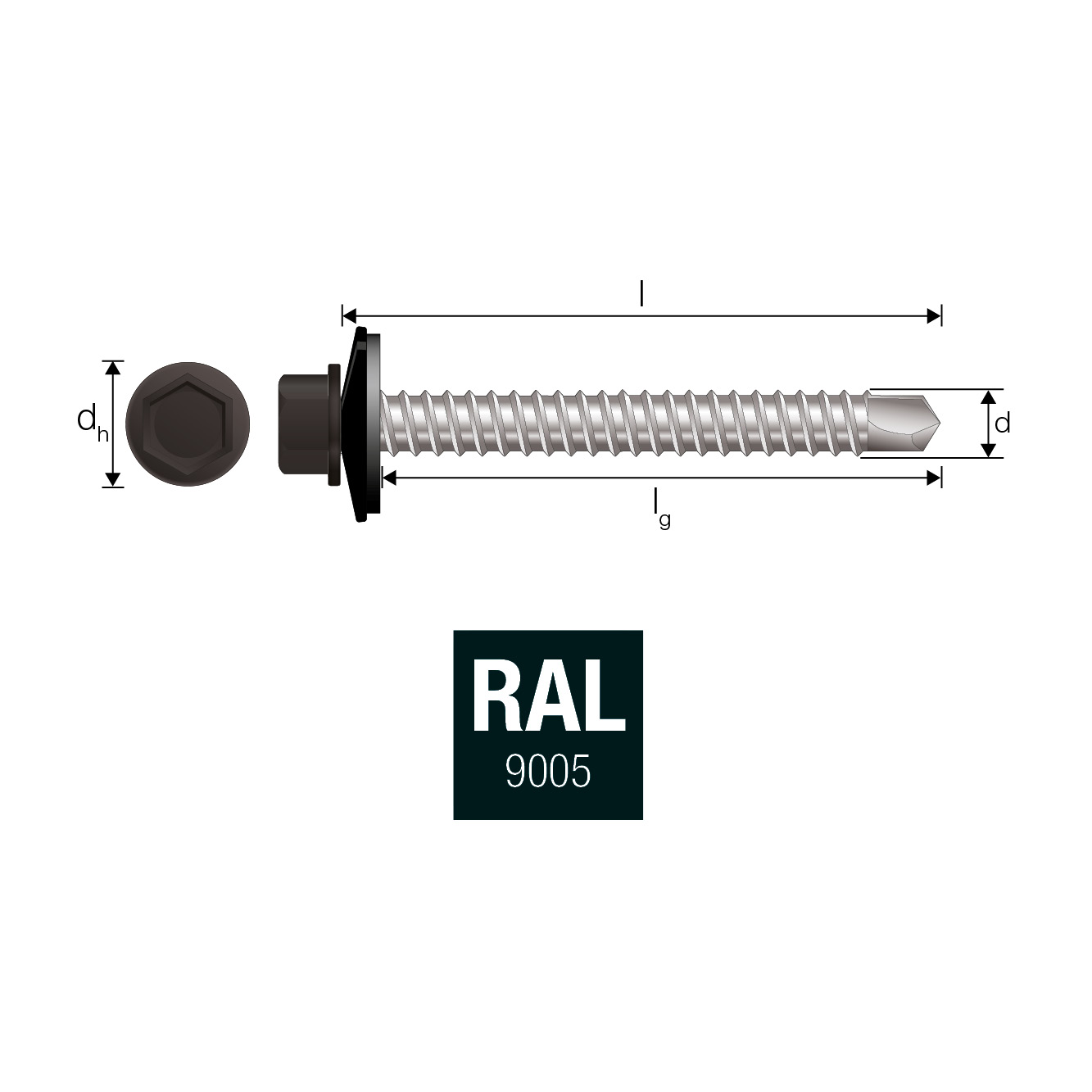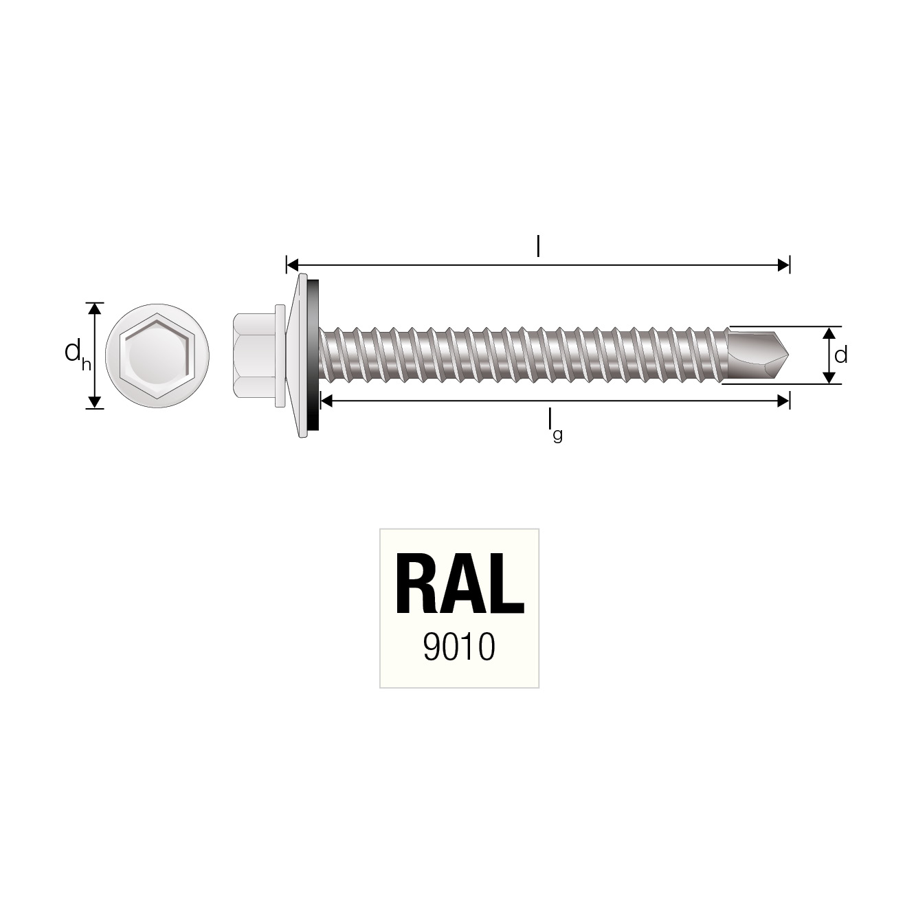 Farmer screw with drill point is used to fix profiled metal sheet to wood for roof and wall installation. Fit the screw in the concave part of the profiled sheet. Drilling capacity is 2.0 x 1.0 mm.