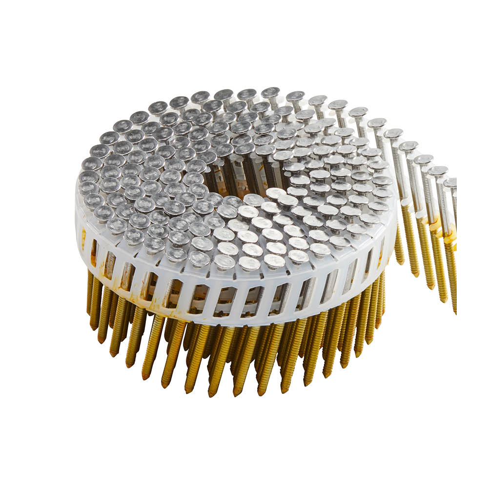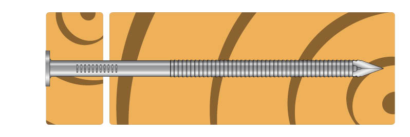 Cladding nail is mainly used for painted facades. The length of the cladding nail is developed to not penetrate the wind shield/protection behind the facade and the flat head covers the opened wood fibre after insertion. The ring shank increase the withdrawal performance and the 60 degree diamond point prevents splitting.