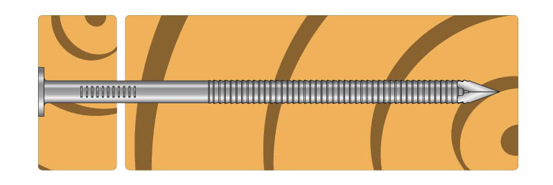 The length of the nail is developed to not penetrate the wind shield/protection behind the facade and the flat head covers the opened wood fibre after insertion. The ring shank increase the withdrawal performance and the 60 degree diamond point prevents splitting.