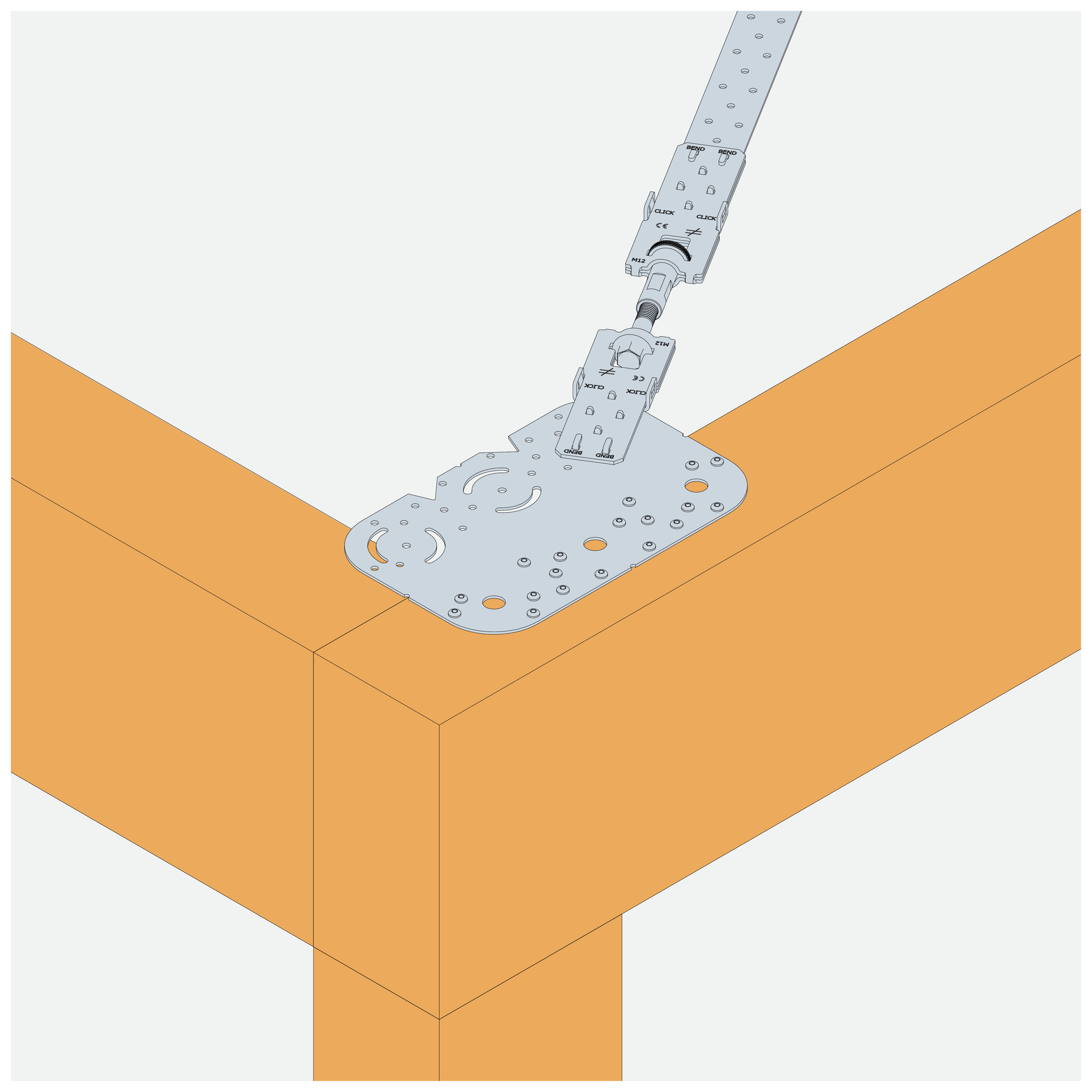 The big advantage is that the patented BPST strap tightener can be installed directly on the WSP bracket. The innovative click system makes installation easy and a builder can save a considareble amount of installation time per connector compared to traditionel strap tension tighteners. See installation instructions included in our systems.