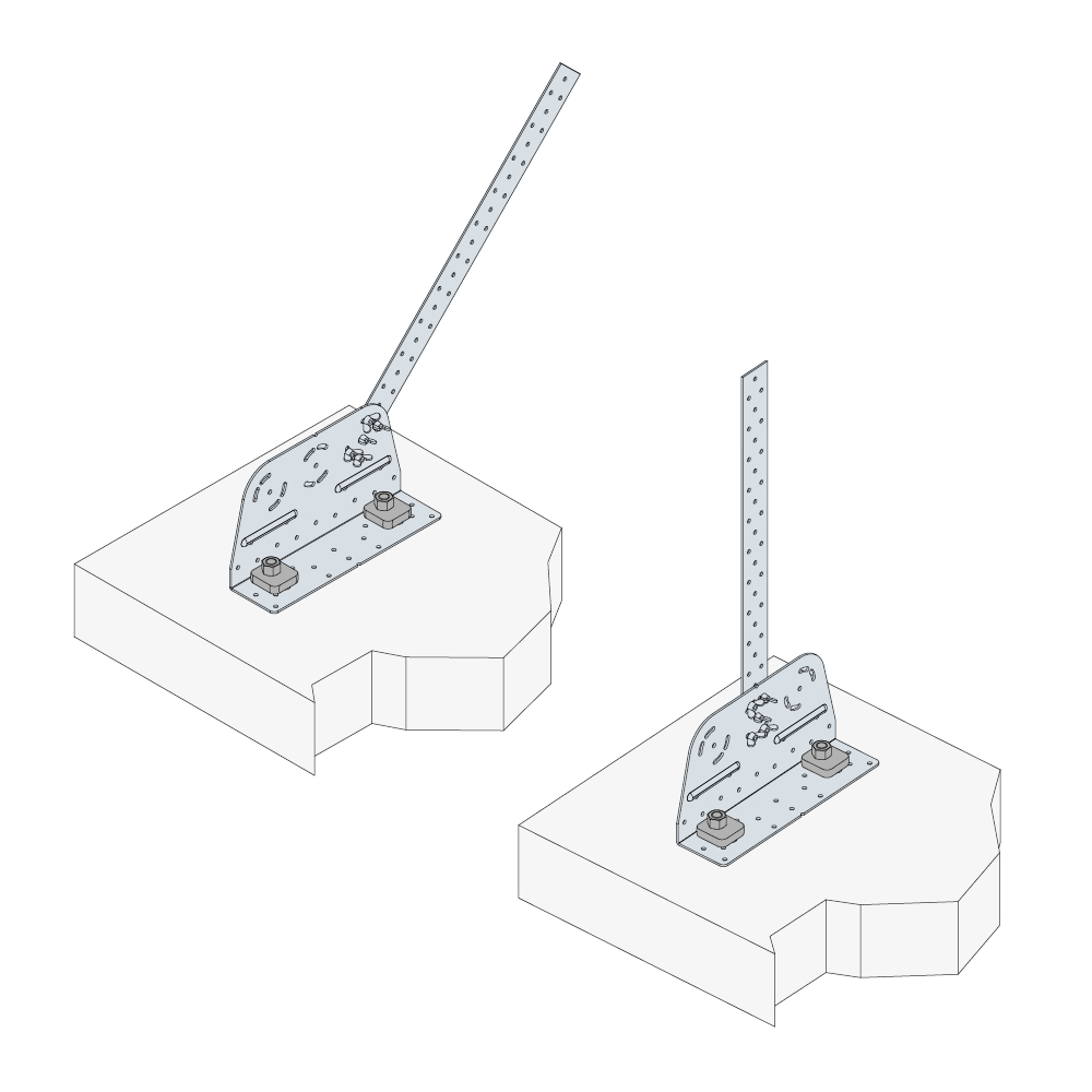 Seinäpintojen jäykistyksessä ja pystysuuntaisessa ankkuroinnissa WSD voidaan asentaa suoraan betoniin kahdella M12-pultilla ja US40/40/10-aluslevyillä.
